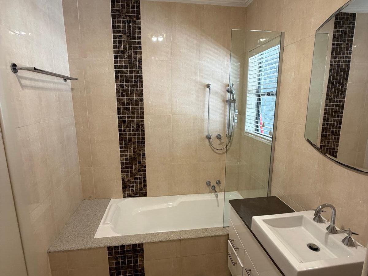 Three bedrooms and a full bathroom with a separate toilet and shower.